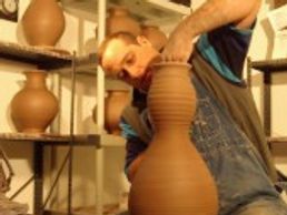For over 30 years, Dwight has been creating his unique shapes on the potters' wheel. Each form becomes a black canvas for Regina. In combination with their vibrant glazes, she hand-paints her original designs to each one using intricate resisting processes.